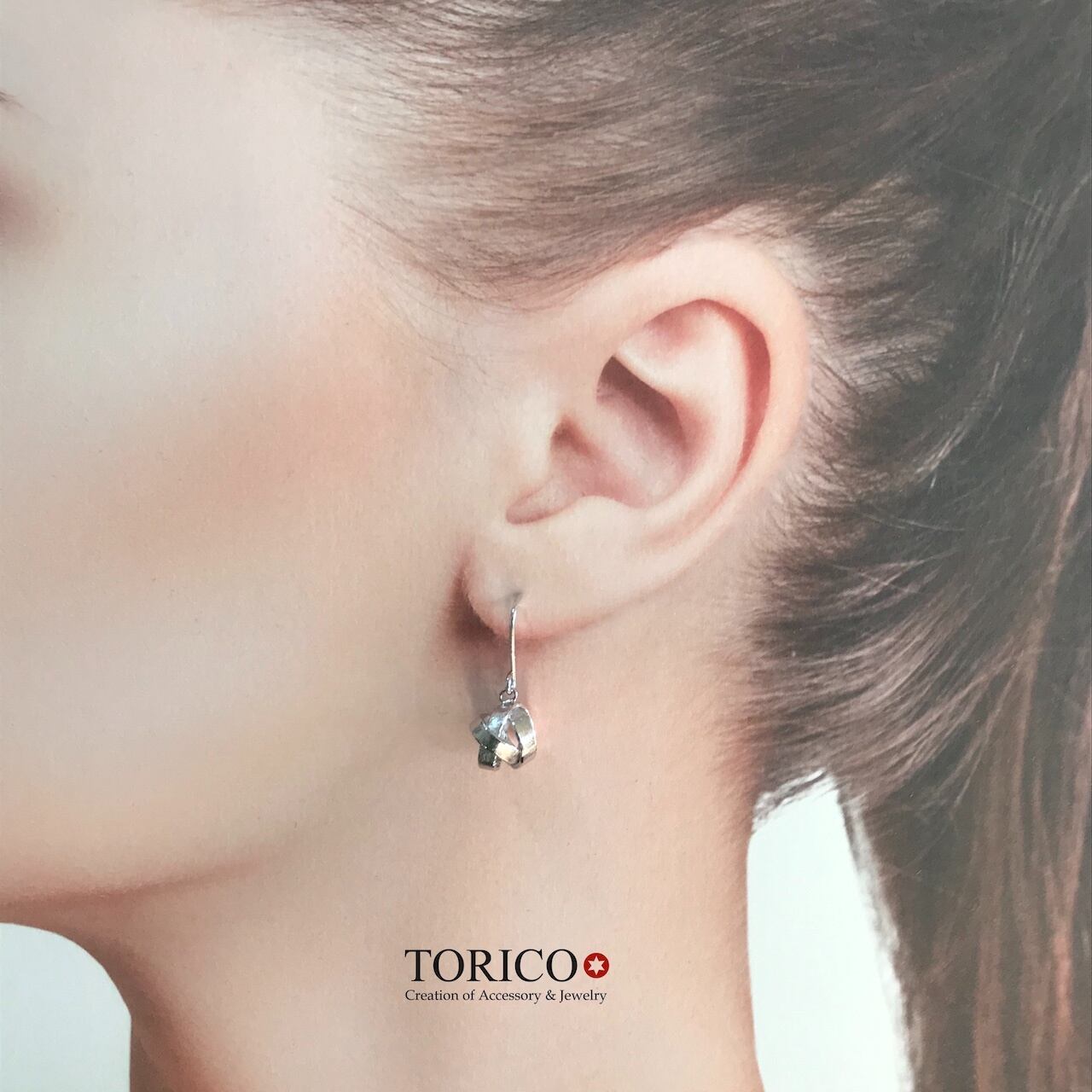 金属の帯を結んだような「結び」がモチーフのピアス。