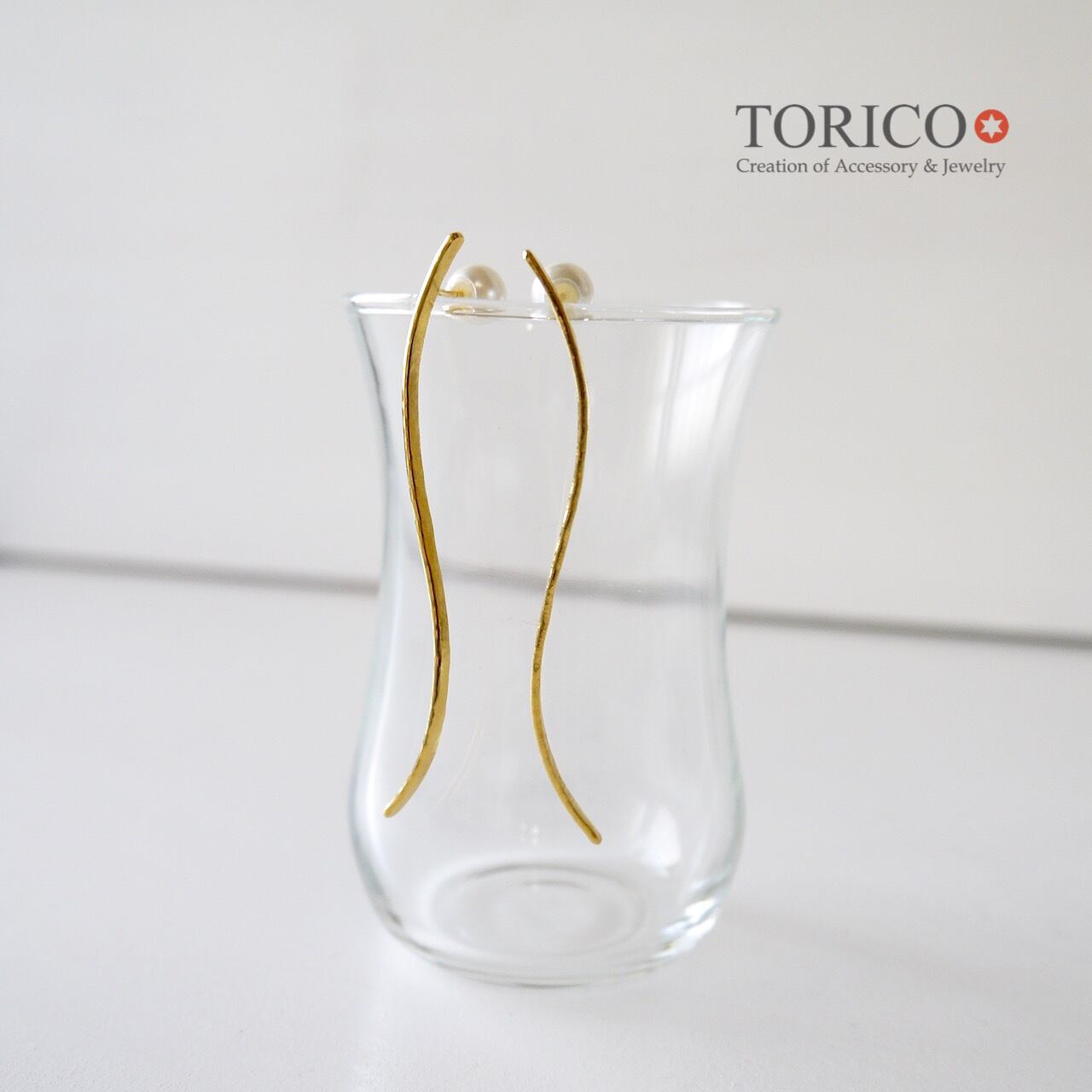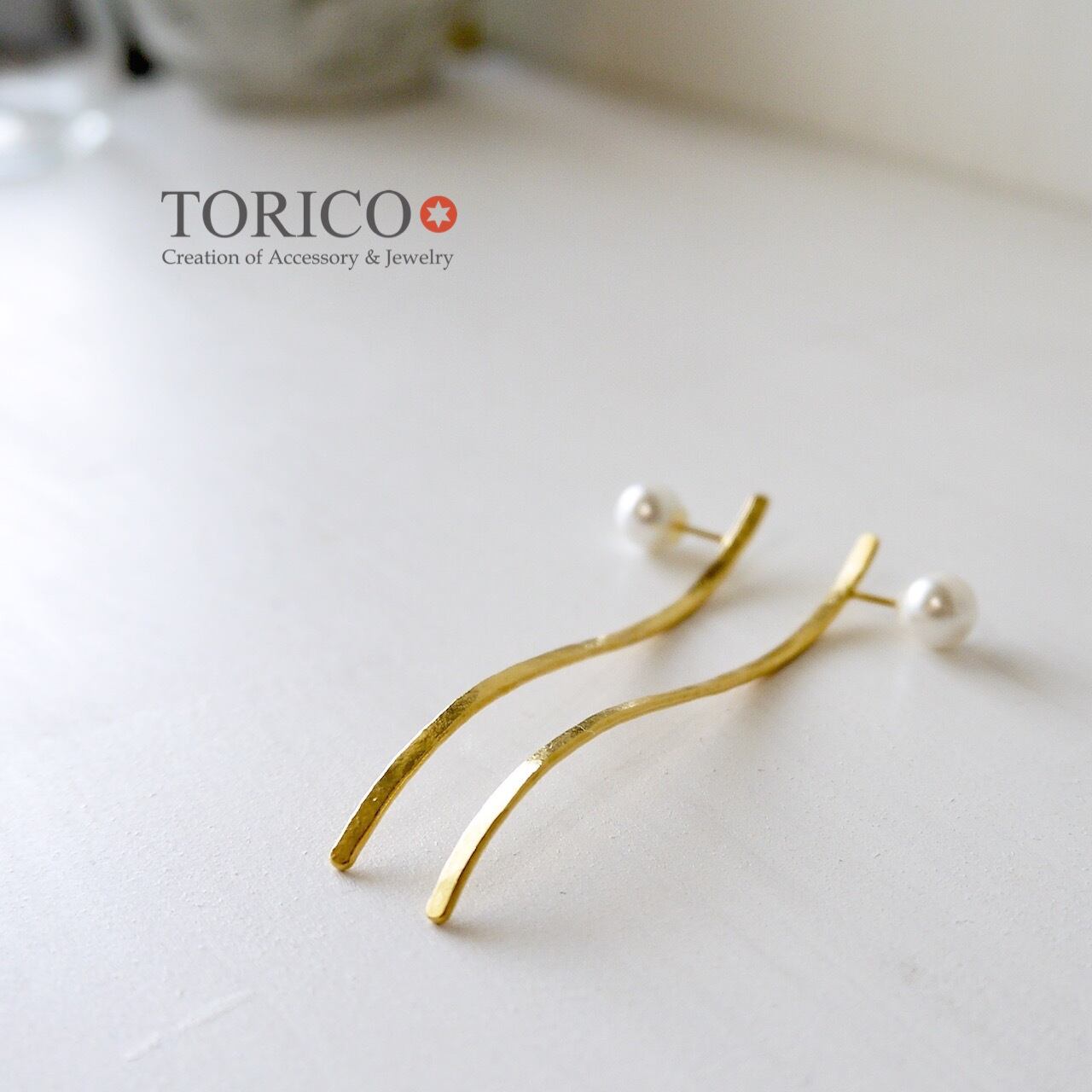 1点1点ハンマーで叩いて、手作業で曲げ、独特の質感をつけています。あたたかみのある風合いと個性的なデザインは、耳元を印象的に見せてくれます。